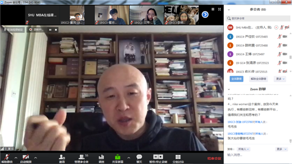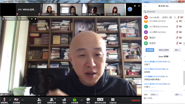這次課程是疫情期間通過視頻直播的兩天課程。整個教學過程中,上大MBA中心做了大量細致認真的工作。課前,認真溝通課程大綱,就評分要求反復磋商,以及試驗網(wǎng)絡課程效果;課程進行中,有老師全程跟聽,進行保障。課后,及時反饋學生以及作業(yè)情況。印象最深的還是各位同學,這次課程的學生總體表現(xiàn)非常優(yōu)秀,大家課前做了充分準備,上課積極主動,在高強度的學習過程中,大家始終能保持昂揚的熱情,非常完美地完成了學習要求。