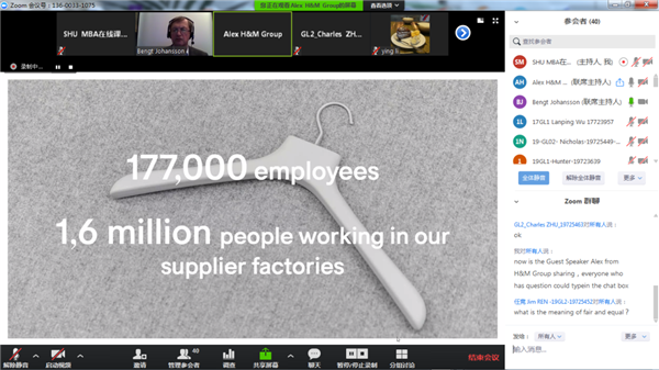 除了教授課程知識點(diǎn),Bengt請到了瑞典重量級嘉賓H&M Group的生產(chǎn)部門東亞地區(qū)可持續(xù)發(fā)展經(jīng)理Alex Andersson先生。實(shí)力派嘉賓Alex先生在中國生活多年,對快銷品牌亞洲市場的可持續(xù)性發(fā)展有著非常資深的經(jīng)驗(yàn)。Alex先生通過貼近生活的案例分享,讓學(xué)生們更深刻地了解國外企業(yè)在企業(yè)倫理方面的社會責(zé)任,涵蓋和深慮各個相應(yīng)行業(yè)的未來可持續(xù)性發(fā)展。