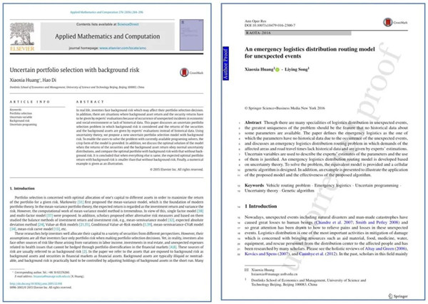 黃曉霞教授是一位有良好的思想作風(fēng)、敬業(yè)勤奮、熱愛(ài)研究生教育的優(yōu)秀教師,獲得過(guò)學(xué)?!把芯可撐闹笇?dǎo)優(yōu)秀獎(jiǎng)”、“優(yōu)秀共產(chǎn)黨員”和“十大新聞人物”等榮譽(yù)。黃曉霞教授致力于投資優(yōu)化、項(xiàng)目選擇、優(yōu)化與決策分析方面的研究,已有四十篇論文被SCI、SSCI檢索的國(guó)際著名期刊發(fā)表,主持過(guò)多項(xiàng)國(guó)家級(jí)科研項(xiàng)目,是“教育部新世紀(jì)優(yōu)秀人才”,其研究專著獲北京市第十二屆哲學(xué)社會(huì)科學(xué)優(yōu)秀成果一等獎(jiǎng),學(xué)術(shù)研究處于學(xué)科前沿。