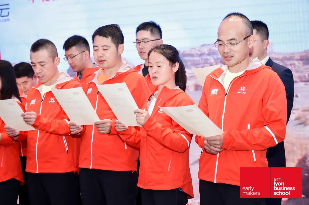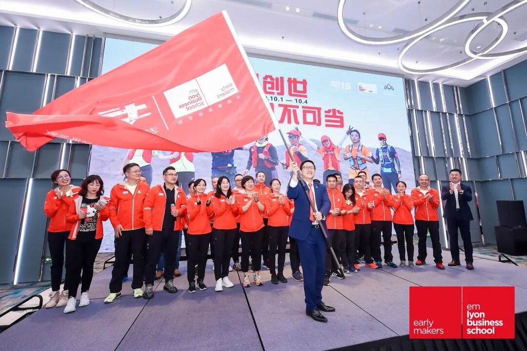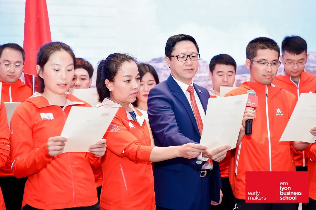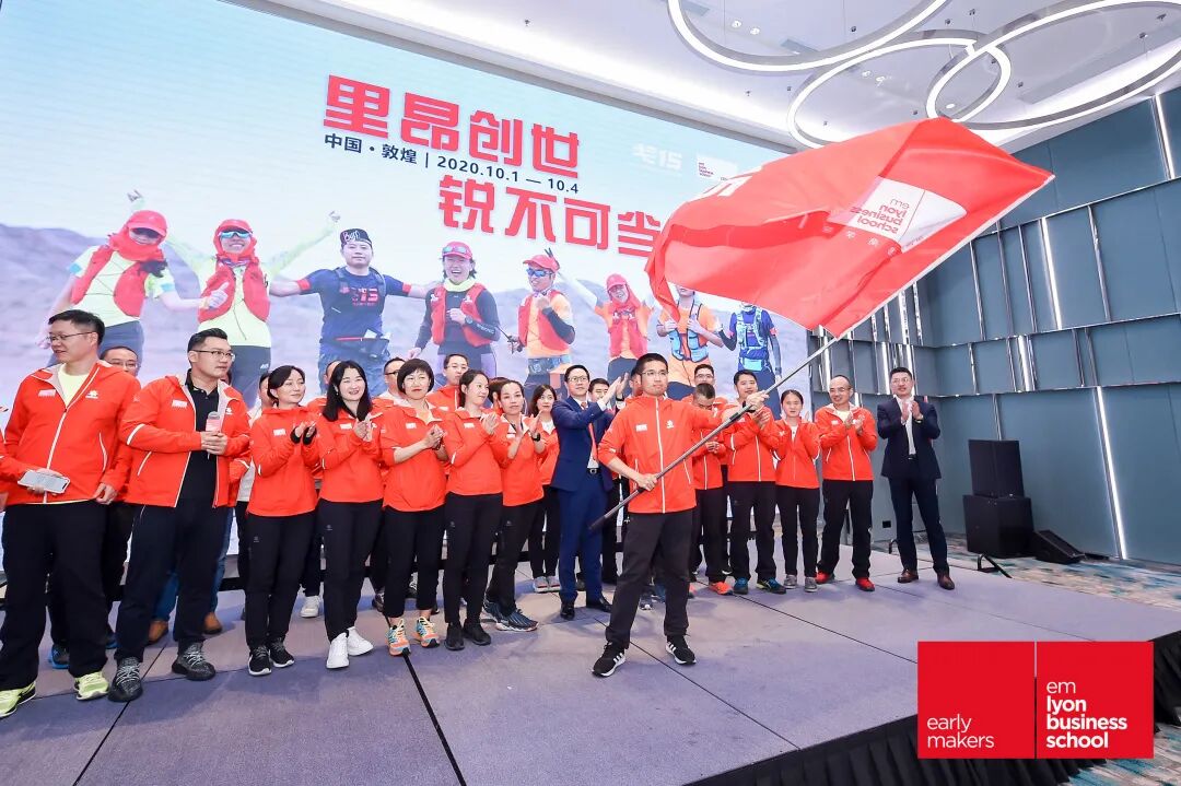 北郵里昂EMBA2018和2019級(jí)以及法國(guó)里昂商學(xué)院CBL項(xiàng)目的同學(xué)們?cè)谝咔橹笤俣葰g聚里昂亞洲校區(qū),舉行熱情洋溢的法國(guó)里昂商學(xué)院創(chuàng)世云隊(duì)出征儀式,為即將出發(fā)戈壁的同學(xué)們加油助威。