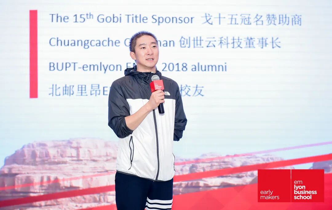 ▲ 創(chuàng)世云科技副總、北郵里昂2019秋學(xué)生閆波致辭 戈壁令我們憧憬、戈壁上也強(qiáng)隊(duì)疊出,北郵里昂EMBA2018春校友方顥龍企業(yè)創(chuàng)世云科技連續(xù)兩年冠名贊助里昂商學(xué)院第十四屆和第十五屆戈壁挑戰(zhàn)賽。創(chuàng)世云科技副總、北郵里昂2019秋學(xué)生閆波發(fā)表致辭,預(yù)祝里昂創(chuàng)世云隊(duì)戈十五順利出征,以最佳的狀態(tài)迎接即將到來(lái)的挑戰(zhàn),積極拼搏,團(tuán)隊(duì)協(xié)同,勇往直前,重塑自我。里昂創(chuàng)世,銳不可當(dāng)!加油! 華北校友會(huì)年度首席總冠名贊助商-韋德伍斯