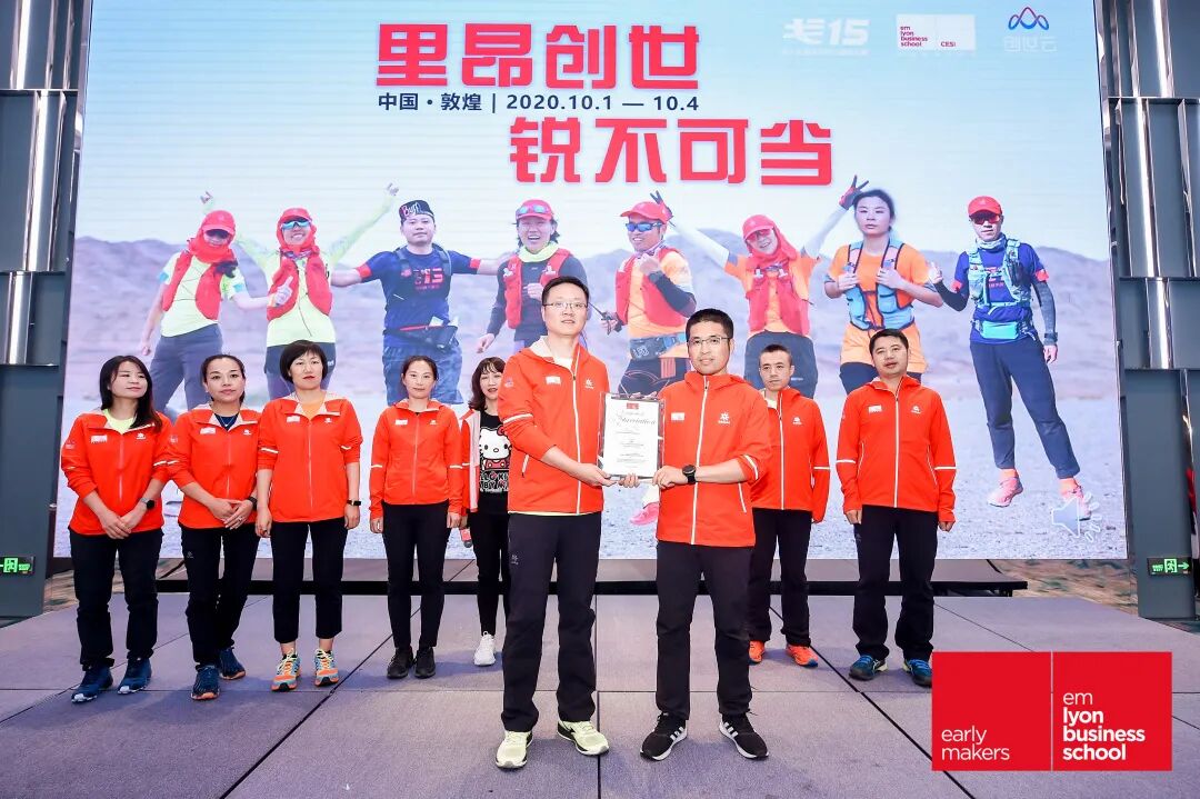 法國(guó)里昂商學(xué)院體育俱樂部會(huì)長(zhǎng),2020年度里昂華北學(xué)生校友會(huì)首席冠名贊助商,韋德伍斯品牌董事長(zhǎng)沈強(qiáng)先生也為即將出征的里昂創(chuàng)世隊(duì)送上祝福,希望隊(duì)員們用更健康、積極和持久的動(dòng)力擁抱挑戰(zhàn),祝愿戈十五挑戰(zhàn)圓滿成功! 團(tuán)長(zhǎng)頒發(fā)戈壁貢獻(xiàn)獎(jiǎng)證書 戈壁貢獻(xiàn)獎(jiǎng) 戈十五能有今天的成績(jī),離不開老隊(duì)員們一點(diǎn)一滴的傳承。戈14A隊(duì)隊(duì)員黃躍華這一年半來(lái),一直陪伴戈十五隊(duì)員刻苦訓(xùn)練。陪伴大家一起經(jīng)歷風(fēng)雨、一起跨過(guò)山河、一起從深夜跑到凌晨。每個(gè)隊(duì)員出現(xiàn)心理和身體上的問題,都及時(shí)給到大家溝通輔導(dǎo),亦師亦友亦兄長(zhǎng),也很好的詮釋了戈壁的奉獻(xiàn)精神。 像戈十四A隊(duì)隊(duì)員王炳森、吉時(shí)雨等隊(duì)員一樣,在EMBA開學(xué)時(shí)就和師弟師妹們關(guān)于戈十四訓(xùn)練與賽事分享,有這些老隊(duì)員分享了是去了戈壁可以超脫世俗,體驗(yàn)?zāi)欠N見天、見地、見自我人生三重境界。 拼搏就是法國(guó)里昂商學(xué)院的創(chuàng)客精神,在茫茫戈壁灘上,每個(gè)人都是渺小的,在賽場(chǎng)上,無(wú)論曾經(jīng)付出多少努力,總有更強(qiáng)的強(qiáng)者,我們到底在和誰(shuí)比拼?是和自己!拼到痛徹心扉,拼到無(wú)所畏懼,見天,見地,見自我! 團(tuán)長(zhǎng)為領(lǐng)隊(duì)隊(duì)長(zhǎng)們頒發(fā)證書 里昂創(chuàng)世 銳不可當(dāng) 加油 戈15團(tuán)長(zhǎng)、隊(duì)長(zhǎng)們的出征宣言 積極拼搏,挑戰(zhàn)自我 ▲ 張偉偉 EMBA 項(xiàng)目主任 團(tuán)長(zhǎng) 希望所有里昂創(chuàng)世云戈15的隊(duì)員發(fā)揮里昂創(chuàng)客精神,積極拼搏,挑戰(zhàn)自我,團(tuán)隊(duì)協(xié)同,順利完賽!里昂創(chuàng)始,銳不可當(dāng)! 見天、見地、見自己!修身、修心,戈一世! ▲ 黃躍華 2018春EMBA 戈15 領(lǐng)隊(duì) 戈14A隊(duì),戈15榮譽(yù)領(lǐng)隊(duì)!兩年四上戈壁,沿著玄奘大師的足跡,與高人為伍、和智者同行,在戈賽中遇見更好的自己!沒參加戈賽、不算讀過(guò)EMBA! 一起出發(fā),一起到達(dá)! ▲ 王晶 EMBA項(xiàng)目助理主任 戈15 領(lǐng)隊(duì) 上戈壁的初心,跳出舒適區(qū),挑戰(zhàn)自我,追尋夢(mèng)想! 希望從戈壁回來(lái),回頭有一路的故事,低頭有堅(jiān)定的腳步,抬頭有清晰的遠(yuǎn)方! 大漠孤煙 豪氣沖天 挑戰(zhàn)戈壁 超越自我 ▲ 張德永 2019春EMBA 戈15 A隊(duì)隊(duì)長(zhǎng) 一年半的訓(xùn)練,吃過(guò)的苦,流過(guò)的汗、受過(guò)的傷痛,但我們依然還堅(jiān)持在奔跑的路上,追逐星星,迎接太陽(yáng),薄積而厚發(fā),一群堅(jiān)守的人、一群因?yàn)闊釔鄱鴪?jiān)持的人。 邁開腿,沒有到達(dá)不了的遠(yuǎn)方! ▲ 張榮武 2019春EMBA 戈15 A隊(duì)副隊(duì)長(zhǎng) 雖然還未真正經(jīng)歷戈壁的洗禮,但每個(gè)商學(xué)院的學(xué)生都值得有一個(gè)戈壁夢(mèng)。既然回歸校園,何不給自己一個(gè)機(jī)會(huì),最好的生活方式,就是找到一群志同道合的人,一起奔跑在路上。一年半的堅(jiān)持訓(xùn)練,總有一種力量驅(qū)趕我前行,那就是有夢(mèng)就要去追!希望里昂創(chuàng)世云隊(duì)能夠超越自己、取得佳績(jī)! 里昂創(chuàng)世,銳不可當(dāng),出征戈壁,里昂必勝! ▲ 王宗敏 2019秋EMBA 戈15 A隊(duì)副隊(duì)長(zhǎng) 大家好,我是2019秋的王宗敏,很榮幸來(lái)到了里昂這個(gè)充滿愛的大家庭,同時(shí)也很幸運(yùn)能夠參加A隊(duì)代表里昂參加戈15挑戰(zhàn)賽,興奮之余,A隊(duì)的小伙伴們也是亞歷山大! 從小白開始練習(xí),整整一年時(shí)光,我堅(jiān)信付出總會(huì)有收獲!隊(duì)員們用腳步用汗水書寫戈壁新篇,里昂創(chuàng)世云隊(duì)加油! 堅(jiān)持做好一件事,看最美的風(fēng)景。里昂必勝! ▲ 沈晨偉 2019春EMBA 戈15 B隊(duì)隊(duì)長(zhǎng) 我覺得戈壁賽是我們的一門選修課,能讓我們學(xué)到、看到、體會(huì)到課堂上完全給不到我們的獨(dú)特內(nèi)容。在戈壁上我希望能夠引領(lǐng)自己的靈魂,跟上自己的身體,與隊(duì)友們共同努力走向最終的勝利!都說(shuō)走過(guò)戈壁的就是兄弟姐妹,我希望跟我的老師同學(xué)們成為兄弟姐妹,所以我來(lái)了。你們也來(lái)吧! 人生總要挑戰(zhàn)不可能! ▲ 陳淼 2018秋EMBA 戈15 B隊(duì)副隊(duì)長(zhǎng) 作為一個(gè)創(chuàng)業(yè)者,我們需要把里昂商學(xué)院的early maker 精神發(fā)揚(yáng)光大。跑步,是鍛煉堅(jiān)毅性格的最佳方式。兄弟姐妹們,我們一起加油! 重塑自己,體驗(yàn)不同人生! ▲ 畢承恩 2019秋EMBA 戈15 C隊(duì)隊(duì)長(zhǎng) 一年半的訓(xùn)練學(xué)會(huì)了堅(jiān)持、更自律了,身體也更健康了來(lái),一起奔跑吧少年!安全PB! 行已致遠(yuǎn)、持之以恒、挑戰(zhàn)自我、發(fā)揚(yáng)協(xié)作 ▲ 魏弓武 2019春EMBA 戈15 C隊(duì)副隊(duì)長(zhǎng) 既然選擇了出發(fā),就要一往無(wú)前;既然選擇了挑戰(zhàn),就要全力以赴。千年之前,玄奘開啟了西行之路,他備歷艱辛,忍饑挨餓,越沙漠,冒風(fēng)沙,九死一生,從未考慮過(guò)放棄。歷經(jīng)八十一難,最終取得真經(jīng)。今天,我們將追隨玄奘的這種精神,再一次踏上這片土地,走進(jìn)茫