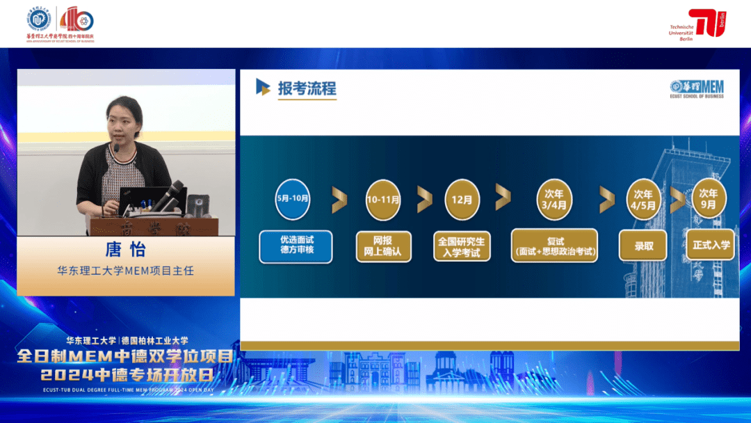6月2日晚,華東理工大學(xué)-德國(guó)柏林工業(yè)大學(xué)全日制MEM中德雙學(xué)位項(xiàng)目專(zhuān)場(chǎng)開(kāi)放日以線上線下相結(jié)合的形式圓滿(mǎn)舉辦。