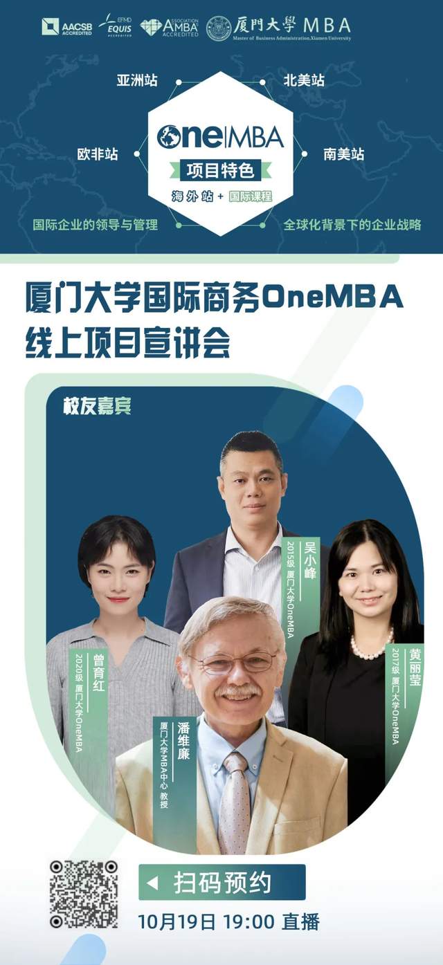 【直播預(yù)告】廈門大學國際商務(wù)OneMBA線上項目宣講會(第五場)開始預(yù)約!