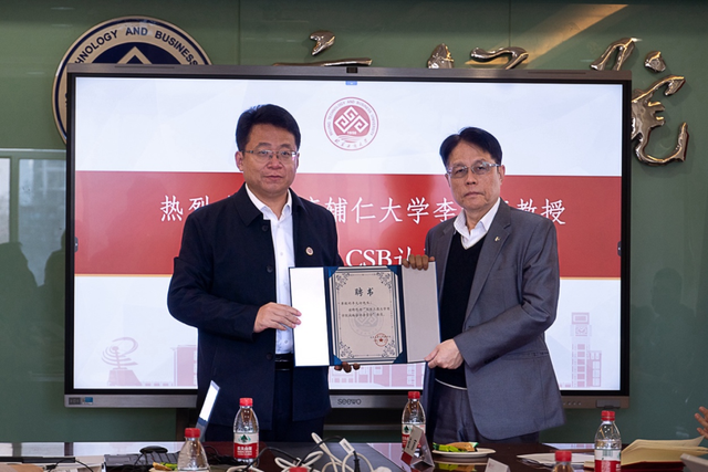 之后,書記付仕倫向李教授頒發(fā)“北京工商大學(xué)商學(xué)院戰(zhàn)略咨詢委員”的聘書,正式邀請他加入學(xué)院的戰(zhàn)略發(fā)展咨詢團(tuán)隊。