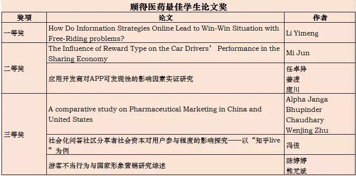 晚上,在伊錦園餐廳舉行了2017中國市場營銷國際學(xué)術(shù)年會頒獎典禮,儀式上頒發(fā)了顧得醫(yī)藥最佳論文獎、顧得醫(yī)藥最佳學(xué)生論文獎、中華營銷獎、優(yōu)秀市場營銷教材獎,張實教授、楊志林教授、石孟澤教授、包葉青教授、劉云川教授受邀作為頒獎嘉賓。