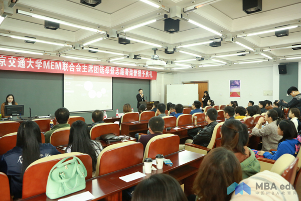 [中國MBA教育網(wǎng)訊]2017年10月15日9:30,北京交通大學MEM首屆聯(lián)合會主席團選舉暨志愿者榮譽授予典禮在思源東樓306教室隆重舉行。出席本次大會的領導和嘉賓有:北京交通大學工程管理碩士中心主任傅少川教授、經(jīng)管學院研究生德育辦公室黃美晨老師、1716班班主任胡嫣然老師、1717班主任韓小娜老師。 本次會議由北京交通大學工程管理碩士中心吳倩老師主持。16級、17級各班學生代表作為投票委員參加此次會議,并行使投票權。現(xiàn)場氣氛活躍,同學們熱情高漲。