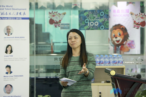 芬蘭駐滬總領(lǐng)事館商務(wù)處高級商務(wù)官員譚力為女士圍繞芬蘭企業(yè)需要的全球化本土人才分享了自己的觀點(diǎn)。她介紹了包括出口、投資及旅游在內(nèi)的芬蘭企業(yè)對外發(fā)展的幾種模式,,并對在長期的努力下結(jié)成的全球化網(wǎng)絡(luò)進(jìn)行了詳細(xì)解讀。她認(rèn)為,在競爭激烈的環(huán)境下,全球本土人才需要具備好奇心,有學(xué)習(xí)新事物的意愿;具有國際性的觀點(diǎn),針對與芬蘭不同的語言、文化等問題,需要了解芬蘭式的想法;注重內(nèi)外的交流能力;具備營銷和銷售技巧;對國家政策敏感等特點(diǎn)。