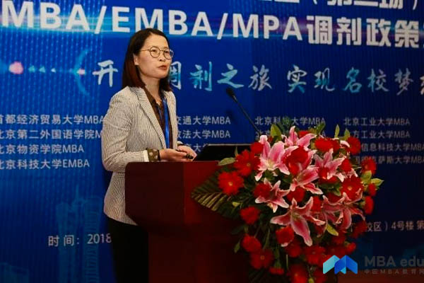 在院校政策發(fā)布會環(huán)節(jié)中,首都經(jīng)濟(jì)貿(mào)易大學(xué)MBA招生主管楊丹梅老師首先進(jìn)行調(diào)劑政策解讀。楊老師講到,首經(jīng)貿(mào)是教育部第五批開辦的MBA院校之一,擁有財經(jīng)、地理、學(xué)費、課程和舉全校之力五大優(yōu)勢。其中,楊老師就地理位置、課程設(shè)置兩大方面做出重點解讀。
