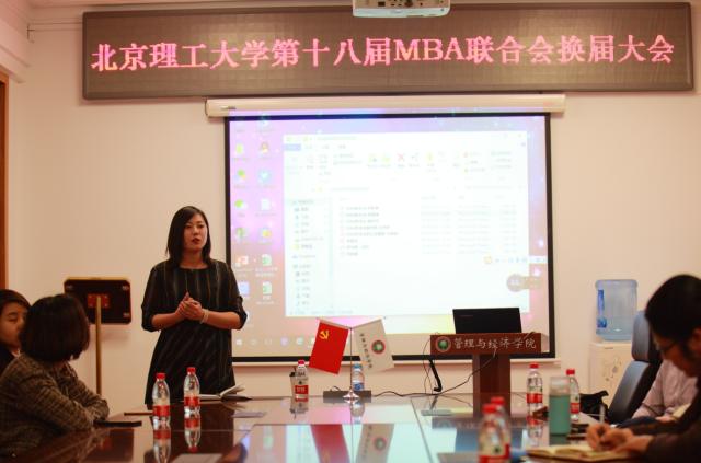 北京理工大學(xué)管理與經(jīng)濟(jì)學(xué)院第十八屆MBA聯(lián)合會(huì)換屆選舉于2018年3月27日晚在主樓317會(huì)議室順利舉行。管理與經(jīng)濟(jì)學(xué)院專業(yè)學(xué)位教育聯(lián)合中心張曉甦副主任、于靜莉、趙宇、2013級(jí)優(yōu)秀MBA校友瞿云以及第十七屆MBA聯(lián)合會(huì)主席團(tuán)成員參加了此次會(huì)議。會(huì)議由第十七屆MBA聯(lián)合會(huì)秘書長王海霞同學(xué)主持。