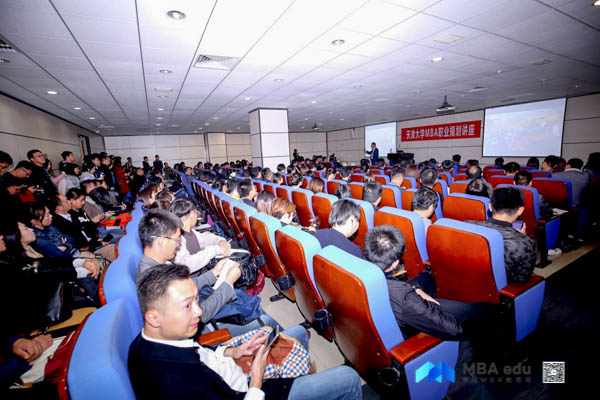 天津大學(xué)管理與經(jīng)濟(jì)學(xué)部MBA中心主任王媛老師、MBA中心學(xué)工部主管劉倩老師、李東連老師,第十七屆MBA聯(lián)合會主席王建超、中國MBA教育網(wǎng)總監(jiān)張林與天大200多名MBA學(xué)員共聚一堂,共同聆聽報(bào)告。甄誠先生金句頻出,干貨滿堂,互動氣氛熱烈而融洽。報(bào)告會由天津大學(xué)2018級MBA王寧同學(xué)主持。
