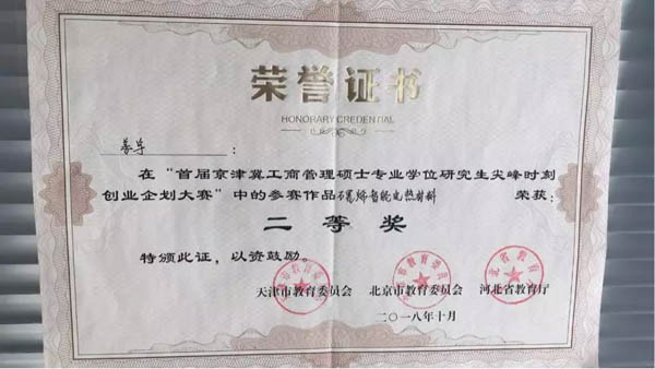 比賽介紹 2018年10月13日至14日,天津財(cái)經(jīng)大學(xué)月牙廳迎來(lái)了首屆京津冀工商管理碩士專業(yè)研究生尖峰時(shí)刻創(chuàng)業(yè)企劃大賽的復(fù)賽和決賽。本次大賽旨在加強(qiáng)京津冀三地研究生教育深度交流、合作,進(jìn)一步提高京津冀研究生教育水平,落實(shí)京津冀協(xié)同發(fā)展戰(zhàn)略部署。大賽分為初賽、復(fù)賽和決賽三個(gè)階段。大賽由天津市教委、北京市教委、河北省教育廳共同主辦,天津財(cái)經(jīng)大學(xué)承辦。 比賽結(jié)果 初賽階段收到參賽作品71份,參加的大學(xué)包括中國(guó)人民大學(xué)、清華大學(xué)、北京大學(xué)、華北電力大學(xué)、北京科技大學(xué)、天津大學(xué)、天津財(cái)經(jīng)大學(xué)、天津師范大學(xué)、河北大學(xué)、河北地質(zhì)大學(xué)、燕山大學(xué)等涉及京津冀三地33個(gè)高校,其中22件作品入圍復(fù)賽。這22個(gè)產(chǎn)品緊緊圍繞人工智能、大數(shù)據(jù)、高端制造、新材料、機(jī)器人等前沿科技展開。經(jīng)過(guò)激烈的比拼,在13日的復(fù)賽階段中共10件作品入圍最終的決賽。 人民大學(xué)成績(jī) 決賽在經(jīng)過(guò)激烈角逐之后,由人大商學(xué)院14級(jí)MBA校友姜宇、韋智康組成的創(chuàng)業(yè)團(tuán)隊(duì)最終獲得了二等獎(jiǎng)(第五名)的成績(jī)。其中14級(jí)MBA韋智康校友用詳實(shí)的分享、精彩的互動(dòng)問(wèn)答贏得了現(xiàn)場(chǎng)觀眾的掌聲和認(rèn)可,獲得了大賽最佳個(gè)人風(fēng)采獎(jiǎng)。中國(guó)人民大學(xué)MBA項(xiàng)目中心獲得最佳組織獎(jiǎng),商學(xué)院郭海教授獲得最佳指導(dǎo)老師獎(jiǎng)。 人大獲獎(jiǎng)項(xiàng)目 本次獲獎(jiǎng)的項(xiàng)目是由人大MBA校友創(chuàng)業(yè)團(tuán)隊(duì)帶來(lái)的“石墨烯智能電熱產(chǎn)品”,這是一項(xiàng)以石墨烯作為原料進(jìn)行的高科技加熱產(chǎn)品的研發(fā)項(xiàng)目,該產(chǎn)品有發(fā)熱效率高、環(huán)保節(jié)能等特點(diǎn),同時(shí)結(jié)合物聯(lián)網(wǎng)技術(shù),應(yīng)用在長(zhǎng)江流域和華北、西北的煤改電地區(qū)。同時(shí)石墨烯可以作為健康理療產(chǎn)品的一項(xiàng)重要材料,也可應(yīng)用在服飾和理療用品領(lǐng)域。 圓滿結(jié)束 文:2014級(jí)MBA校友 韋智康 圖:2014級(jí)MBA校友 韋智康