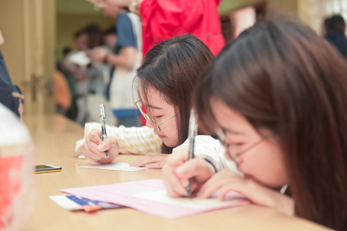 新生在華理明信片上寫下寄語(yǔ)投入寄語(yǔ)箱