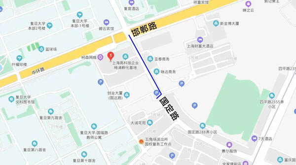 軌道交通10號線五角場站,5號口出站,沿邯鄲路向西至國定路口。