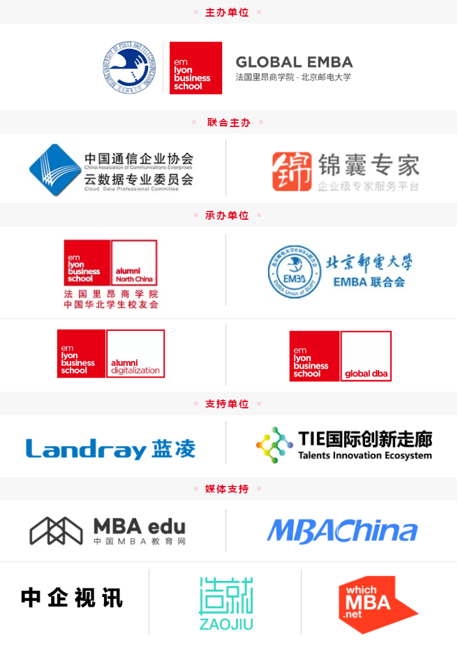 為此,北京郵電大學(xué)-法國里昂商學(xué)院EMBA項(xiàng)目聯(lián)合中國通信企業(yè)協(xié)會(huì)云數(shù)據(jù)專業(yè)委員會(huì)、錦囊專家、里昂華北學(xué)生校友會(huì)、北京郵電大學(xué)校友聯(lián)合會(huì)、里昂數(shù)字化俱樂部、里昂商學(xué)院Global DBA項(xiàng)目于3月24日下午在北京共同舉行 “2021中國數(shù)字企業(yè) 智慧城市”高峰論壇,論壇得到校友企業(yè)藍(lán)凌軟件、TIE國際創(chuàng)新走廊的大力支持。本次論壇邀請(qǐng)了眾多中國優(yōu)秀數(shù)字化轉(zhuǎn)型企業(yè)的領(lǐng)導(dǎo)者以及專家學(xué)者分享他們?cè)谄髽I(yè)數(shù)字化領(lǐng)域最前沿的研究和實(shí)踐,共商共議數(shù)字化轉(zhuǎn)型話題,以前瞻性的理念和專業(yè)化的建議,為現(xiàn)場和線上的聽眾帶來一場精彩的數(shù)字化互動(dòng)。