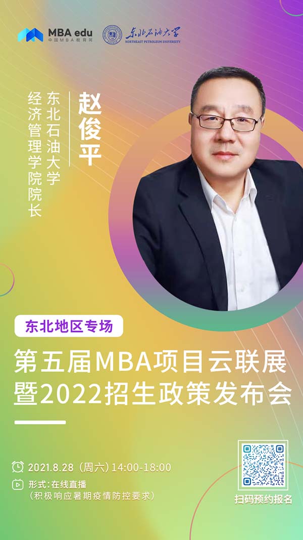 最好的投資就是投資自己。為了幫助全國考生與院校搭建透明、互信的學習平臺,及時了解MBA項目的院校官方資訊,快速選擇理想院校。8月28日東北石油大學經(jīng)濟管理學院院長趙俊平老師應邀參加由中國MBA教育網(wǎng)在線舉辦的“第五屆MBA項目聯(lián)展暨2022招生政策發(fā)布會(東北地區(qū)專場)”。歡迎廣大考生報名,線上咨詢東北石油大學MBA項目。