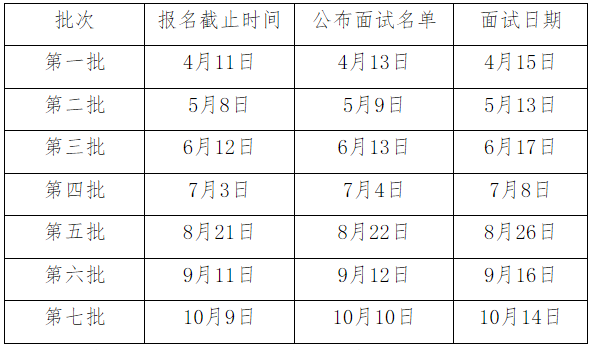 第四批:報(bào)名截止時(shí)間7月3日,7月4日公布面試名單,面試日期7月8日