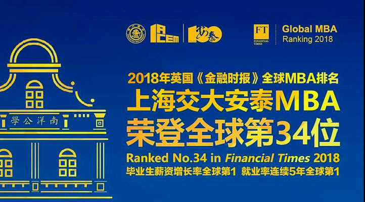 交大安泰MBA項目致力于培養(yǎng)具有品行正、視野寬、基礎(chǔ)實(shí)、創(chuàng)新力強(qiáng)、人文底蘊(yùn)深厚的商界領(lǐng)袖和業(yè)界精英。近二十年來,項目在規(guī)范、質(zhì)量、品牌、特色上下工夫,已具備了良好的品牌效應(yīng)。2018年1月,交大安泰MBA項目在英國《金融時報》(Financial Times)全球MBA排名中榮登第34位,穩(wěn)居全球四十強(qiáng)。2018年3月和5月,交大安泰MBA獲評FT全球女性MBA排行榜第1位和FT全球金融MBA排行榜第15位。