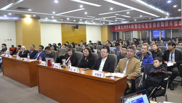 為進一步提升北京師范大學(xué)MBA管理咨詢特色專業(yè)的學(xué)術(shù)水平,將課堂教學(xué)與管理實踐相結(jié)合,北師大MBA學(xué)生籌備成立北師大MBA管理咨詢俱樂部。2019年4月12日晚,國內(nèi)各大咨詢公司多位重量級人物和北師大MBA中心的一百多位師生歡聚一堂,在京師大廈9406學(xué)術(shù)報告廳成功舉辦了俱樂部第一次活動——北師大MBA格物論壇暨管理咨詢俱樂部成立大會。大會上,和君咨詢合伙人劉俐伶博士、北大縱橫合伙人劉輝先生、正略集團CEO劉海梅女士、華夏基石合伙人齊炳堂先生、星云天使匯發(fā)起人兼CEO周旸先生、萊恩克管理咨詢創(chuàng)始人劉云峰先生等嘉賓作了精彩演講,分享了他們對管理咨詢的感悟和行業(yè)先進經(jīng)驗;經(jīng)管學(xué)院管理咨詢專業(yè)授課教師代表Professor Friedrich Bock、MBA教育中心副主任焦豪教授、周江華副教授、張秋蘭老師等,也在大會上做了精彩的發(fā)言。