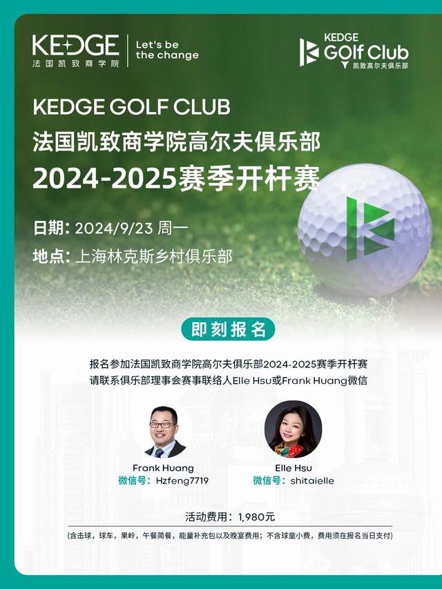 ?重磅消息!KEDGE高爾夫俱樂(lè)部即將迎來(lái)9月23日的2024-2025賽季開(kāi)桿賽!